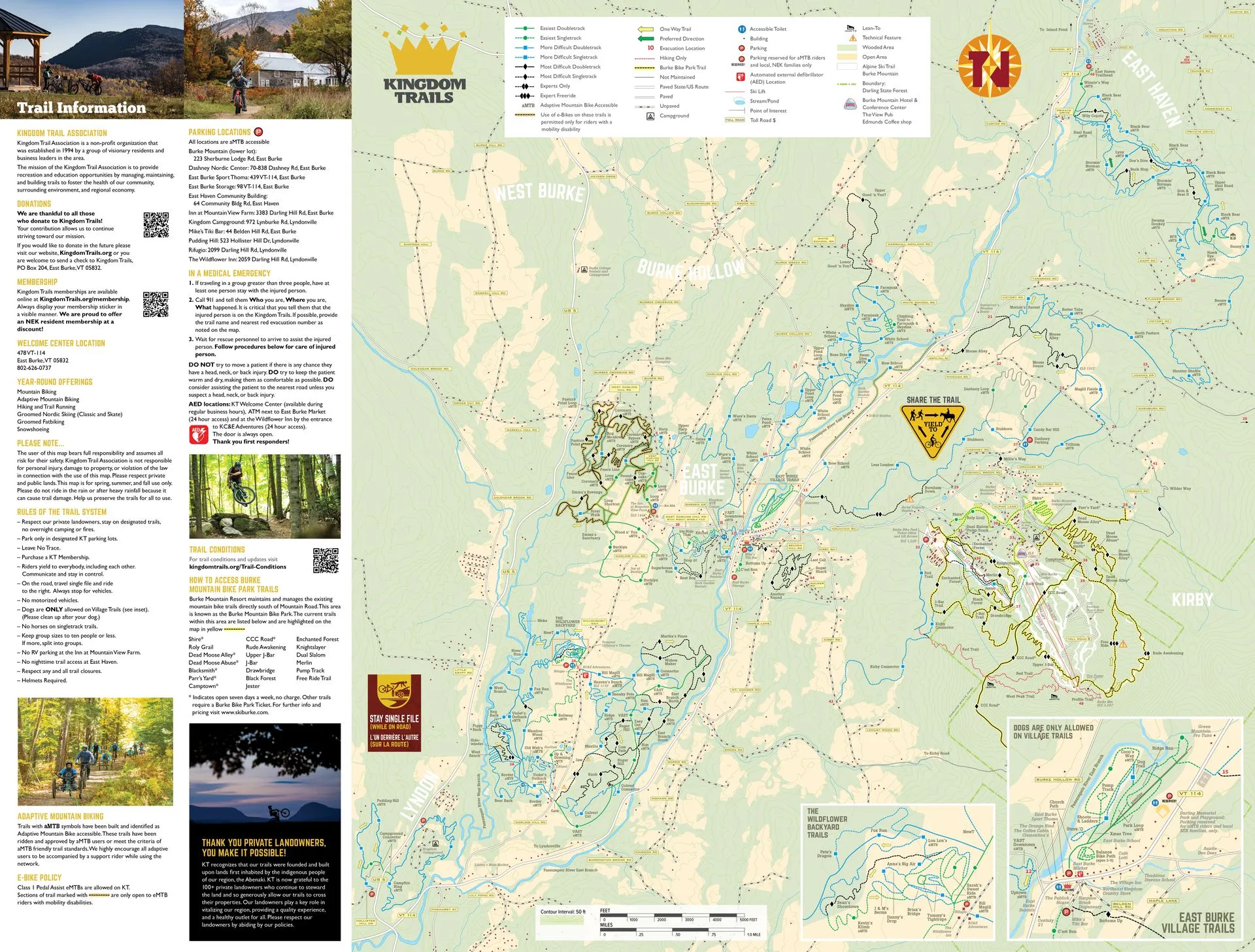 The 100+ mile trail network is directly accessible from Burke Mountain with some sections of trail intersecting with the Burke Bike Park in the summer months.